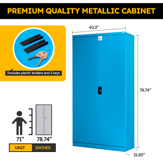 Heavy-Duty metal cabinet FAA140001 (40.28 x 21.85 x 78.74h inches), Spacious Storage, locking cabinet with Adjustable Shelves, blue, Secure Storage, Garage Cabinet, for Office, Home, and Gym