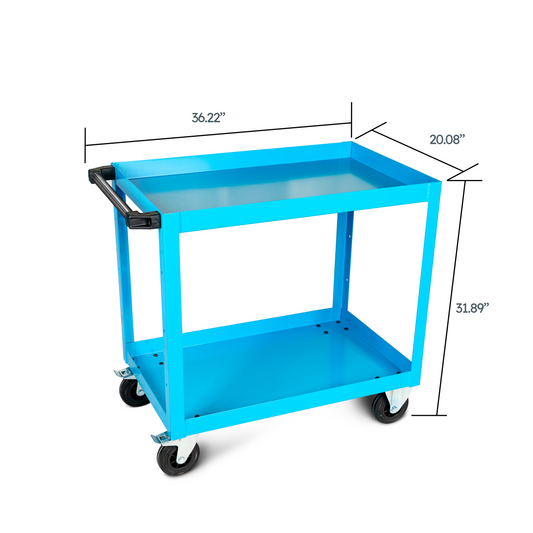 Metal Transport Cart FCR009100 with Swivel and Fixed Casters, High Load Capacity, Baked-on Paint, and Delimited Shelves