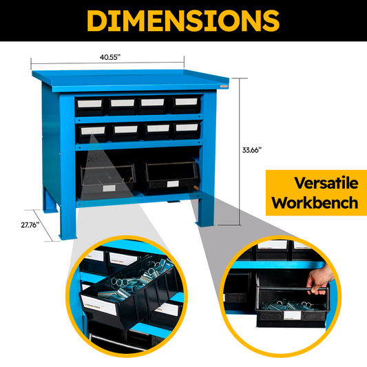 Storage Compat FBGM10052 - FBG Series Industrial Workbenches - Steel Countertop - 40.6' x 27.75' x 33.7' - Heavy Duty Garage Workbench with Multibox Plastic Containers & Steel Shelf - Load Capacity 2645 Lbs
