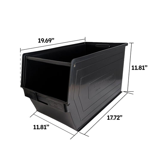 Zeus 4A5PLZ Plastic Storage Bing, Hanging Stacking Containers (20-Inch x 12-Inch x 8-Inch) (BLACK) - 4-pack
