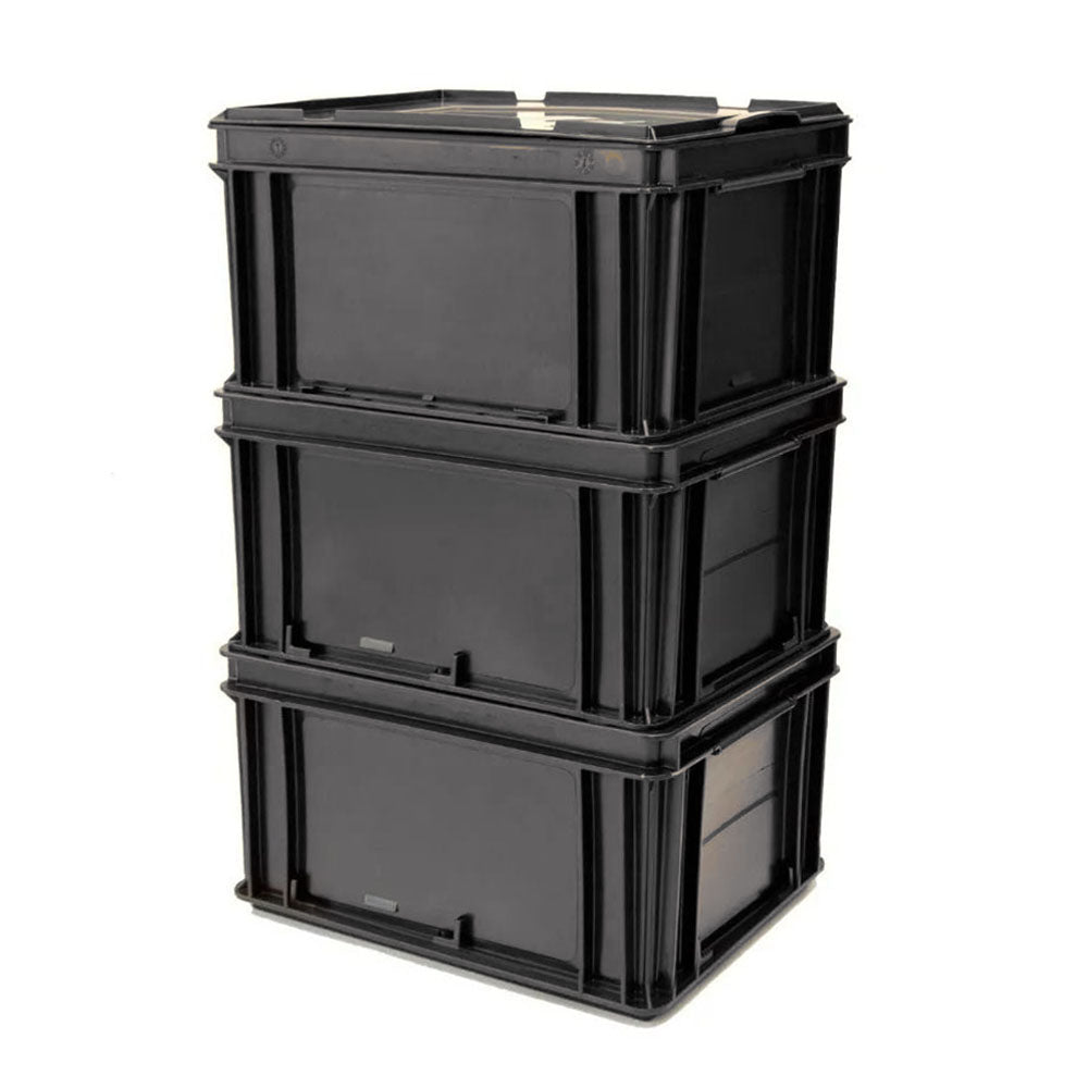 The Athena Series plastic containers have been developed and studied to withstand heavy loads and assist production lines, manual, automated and on flow racks (rollers). Specially designed for the Automotive sector, they are today a world reference for their modularity on standard pallets and their transport by truck. The thick edges and ribbed walls have been studied to support heavy loads, average 50 Kg. In each one in its static mode and 400 Kg. Stacked, maintaining these values for transport especially in the South American region, with roads many times in deteriorated conditions.