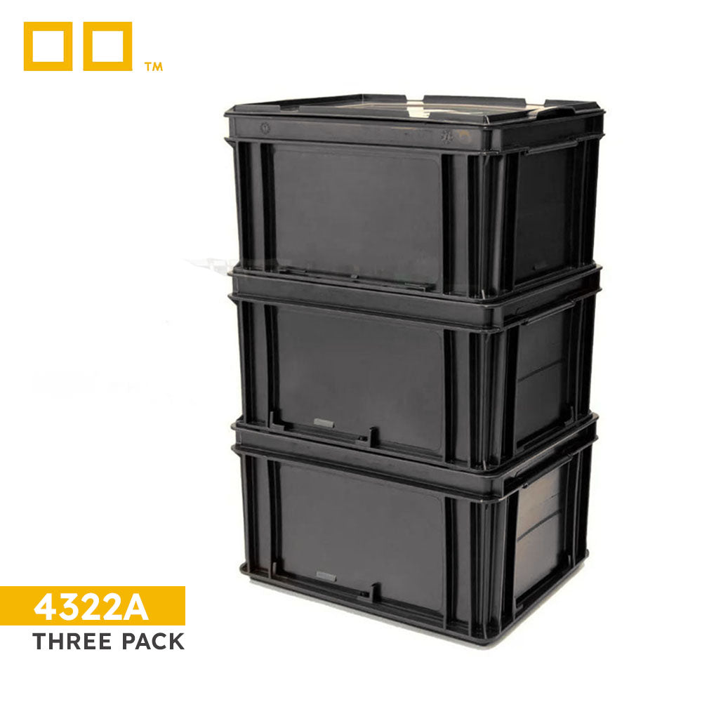 The Athena Series plastic containers have been developed and studied to withstand heavy loads and assist production lines, manual, automated and on flow racks (rollers). Specially designed for the Automotive sector, they are today a world reference for their modularity on standard pallets and their transport by truck. The thick edges and ribbed walls have been studied to support heavy loads, average 50 Kg. In each one in its static mode and 400 Kg. Stacked, maintaining these values for transport especially in the South American region, with roads many times in deteriorated conditions.