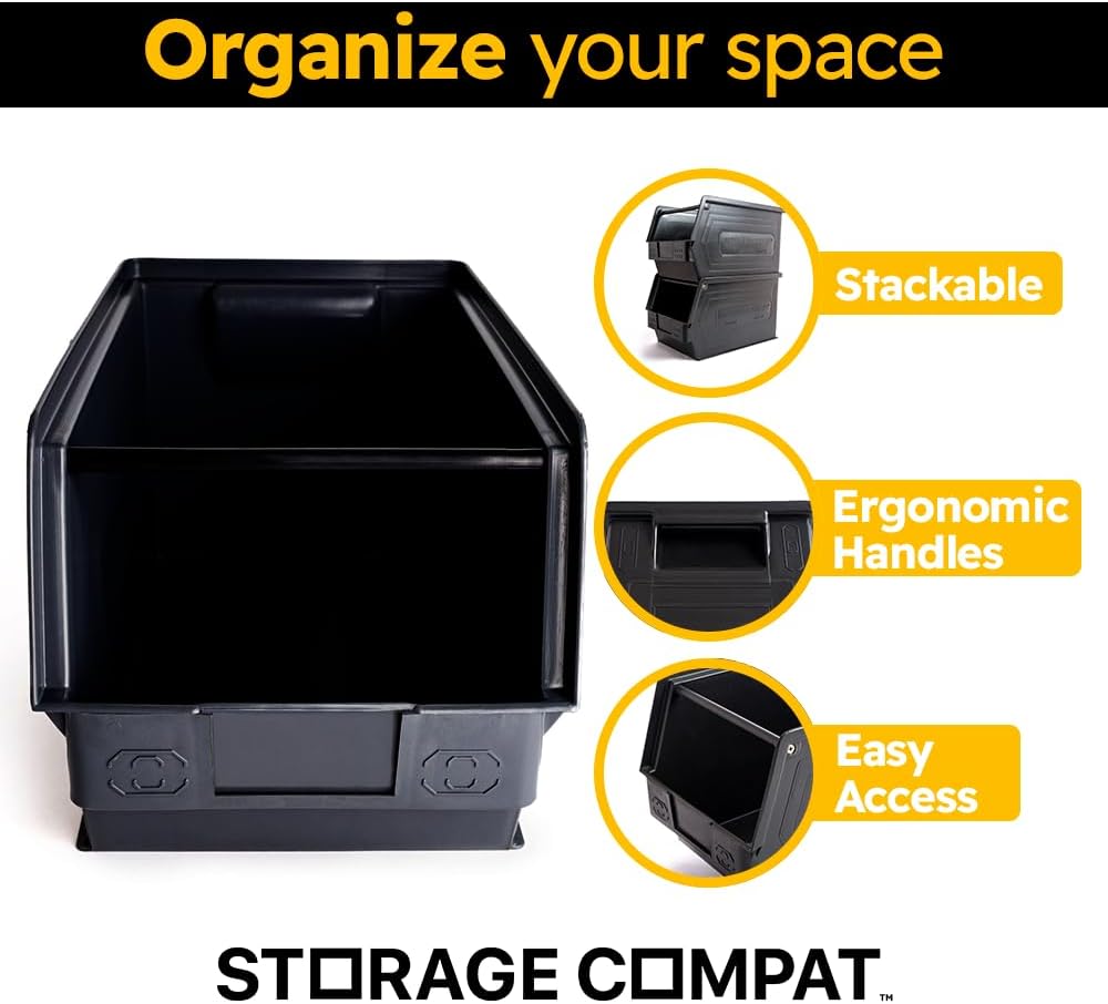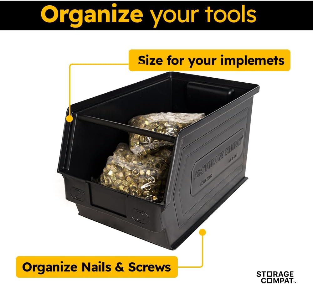 Storage Compat Bins - drawer organizer Zeus 3PLZ - Ideal for Warehouses, Workshops and Assembly Lines, Screws and Nails, Hardware and Tool Storage, Black, 13.77x7.87x7.87 Inches, (Pack x9)