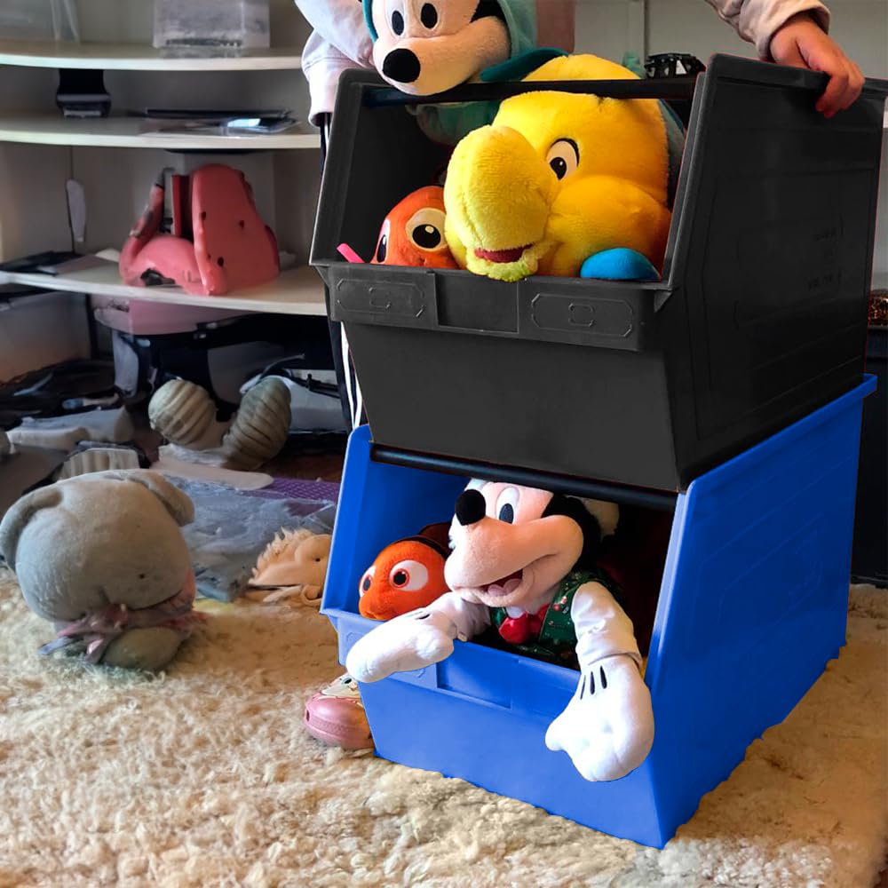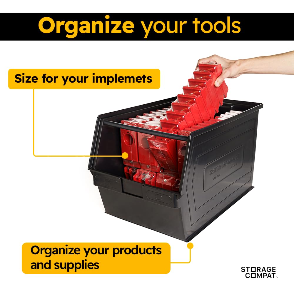 Zeus 4A5PLZ Plastic Storage Bing, Hanging Stacking Containers (20-Inch x 12-Inch x 8-Inch) (BLACK) - 4-pack